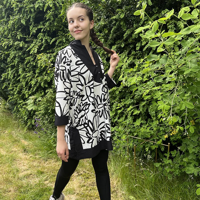 The tunics are made of 100% cotton and can therefore be machine washed at up to 40 degrees. We also recommend steaming/ironing the tunics to avoid creases and folds.