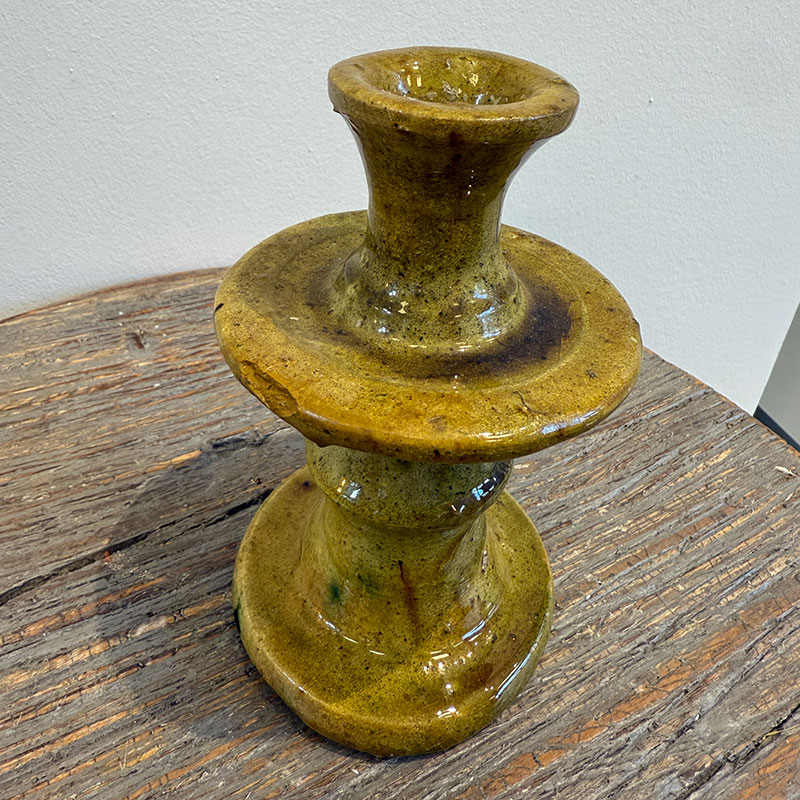 Smuk lysestage i gul Tamegroute-keramik, håndlavet i Marokko. Den varme, gyldne glasur og det rustikke udtryk gør hver stage helt unik.